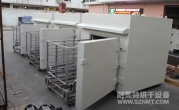 (1)烘干工作時(shí)間12小時(shí),烘干溫度120℃可調(diào)。預(yù)計(jì)產(chǎn)能為600Kg/車。產(chǎn)品采用托盤(pán)平鋪方式放置。