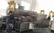 2、本生產(chǎn)線分為機(jī)械手移載產(chǎn)品至菱形線、取樣與安全防護(hù)門、菱形輸送線、預(yù)熱爐、產(chǎn)品出爐溫控監(jiān)測及位置檢測、噴硅系統(tǒng)、視覺檢測系統(tǒng)、流量監(jiān)測系統(tǒng)、NG排除機(jī)構(gòu)、機(jī)械手移載至網(wǎng)帶輸送線、取樣與安全防護(hù)門、網(wǎng)帶輸送線、固化爐、機(jī)械手移載至包裝線、取樣與安全防護(hù)門;系統(tǒng)分為兩種生產(chǎn)模,硅化線和非硅化。